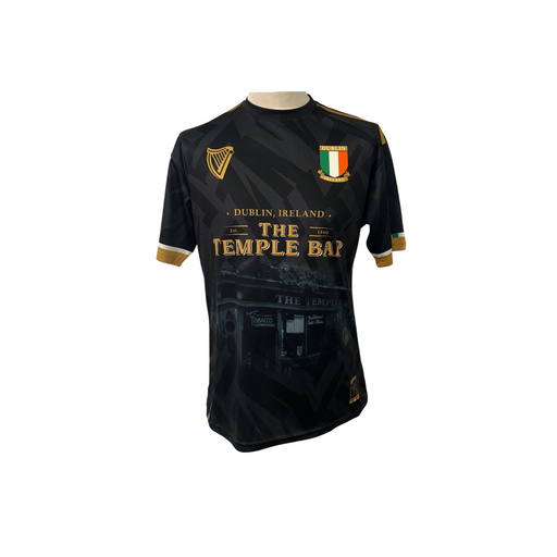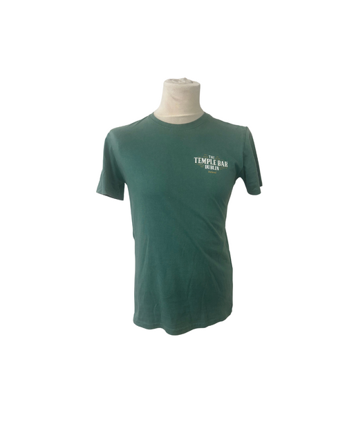 A comfortable green t-shirt with a small "The Temple Bar Dublin" logo on the front and a large Temple Bar Pub Dublin crest on the back.