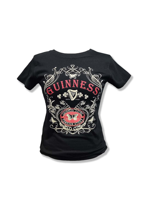 High-quality material and featuring a classic Art Nouveau style Guinness Design. \n \nWomen's t-shirt fit.